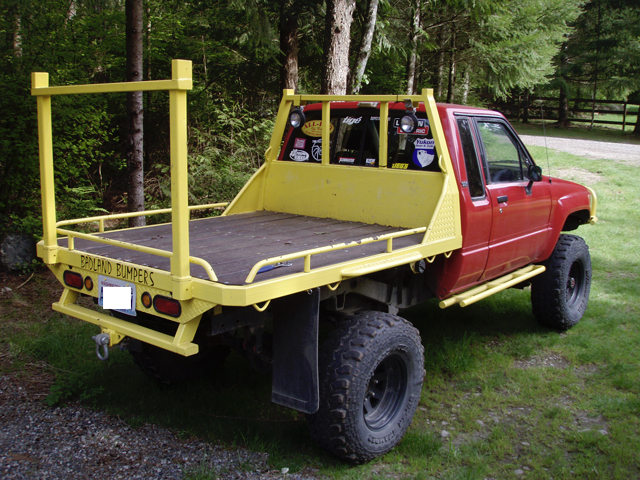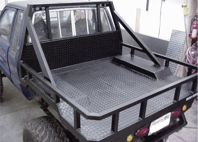A, We also produce a variety of custom flatbeds. We can work with either your designs or ours. For work or for play, it’s up to you. We can add mounts for anything you can imagine. We even provide removable racks that mount to your front bumper that simply slide into mounts with no bolts. These take only a few seconds to mount. Add these along with the removable racks that mount to the flatbeds, and it will allow you to carry long items like canoes or wind surf masts, for instance. Or use them for work. We can mount rear winches either under or on top of these flatbeds.